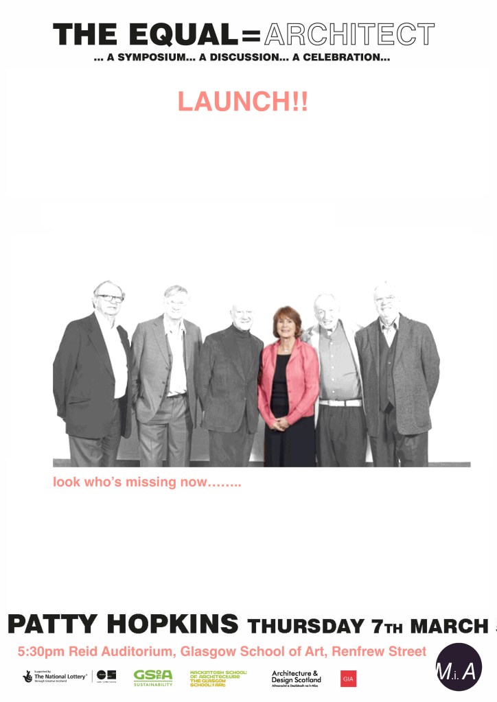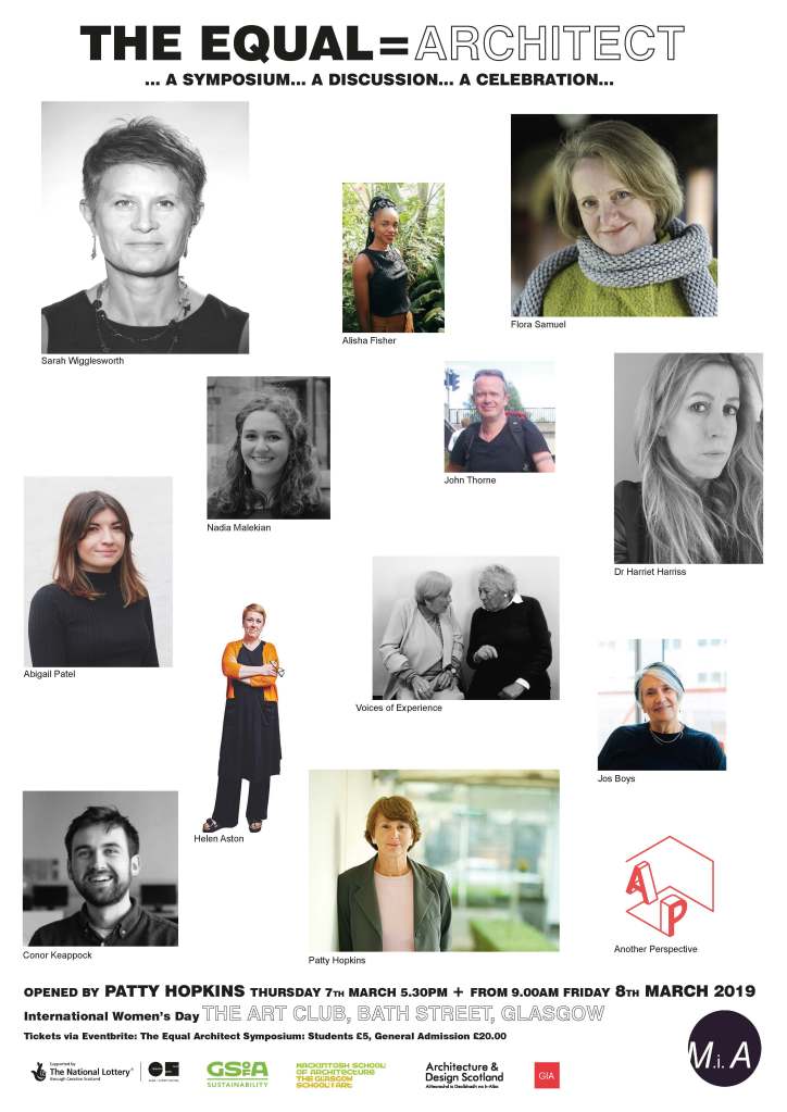 The Equal Architect symposium hosted by Missing in Architecture and the Mackintosh School of Architecture and in collaboration with Creative Scotland, Architecture and Design Scotland, GSA Sustainability Group and Glasgow Institute of Architects, GIA, aims to enhance awareness and understanding of the significance of female architects within the education system and the profession and to provoke discussions to create a more equal environment for all whilst celebrating the work of past, present and future generations of architects.