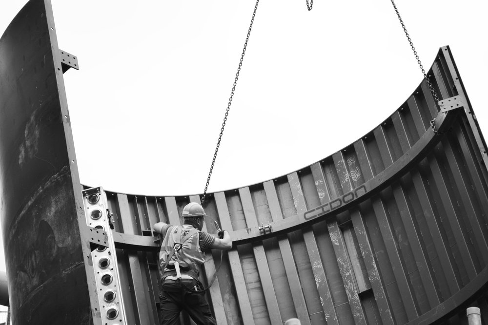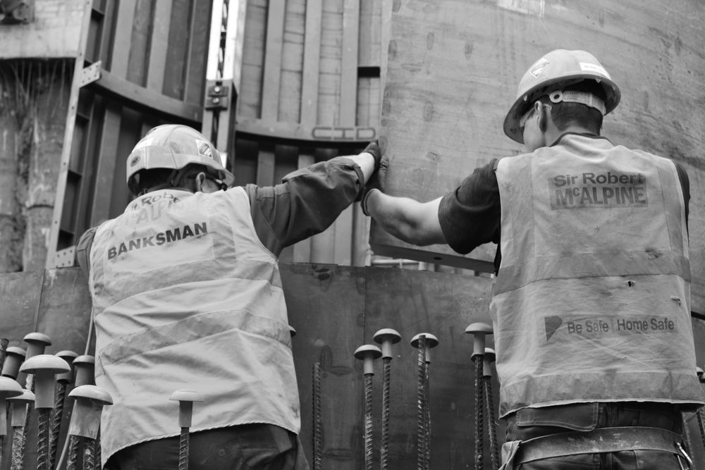 It was a privilege and a unique opportunity to follow the work on the Reid and capture some unique moments. What was completely unexpected was the sheer vibrancy of the colour on site, even at times when it felt muddy and grey. Key signatures of the whole process were the flying red steel forms used for shuttering the driven voids, the sheer number of hi-viz yellow and orange jackets moving around site like a disconnected army of ants. At peak times up to 300 men were working on site in any one day. Finally the two fixed green cranes, which very much saddened me as the last one was finally taken down.