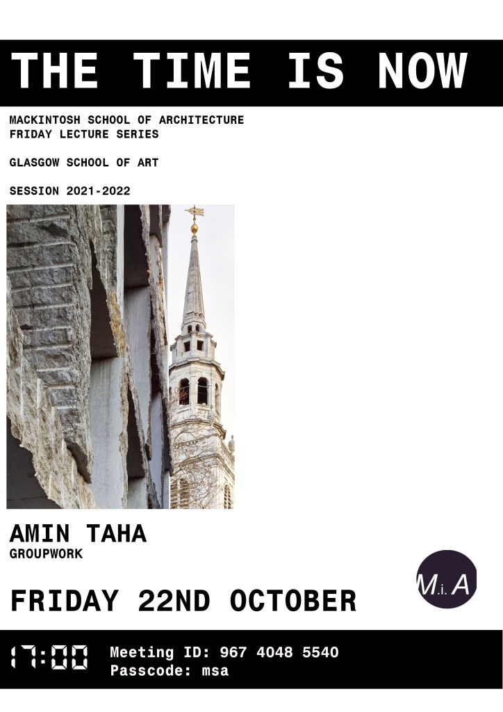 This year Missing in Architecture are delighted to be running the Friday Lecture Series titled ‘The Time Is NOW’.