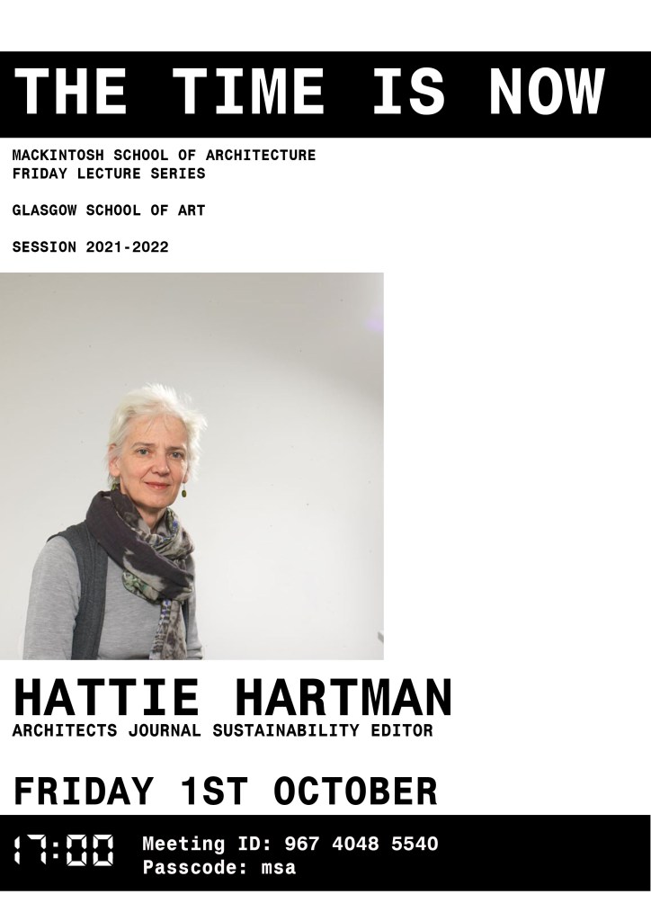 ‘The Time is NOW‘ lecture series will ask a selection of architects to talk about how as a profession we can make a difference in tackling the climate emergency and connects to Glasgow hosting COP26.